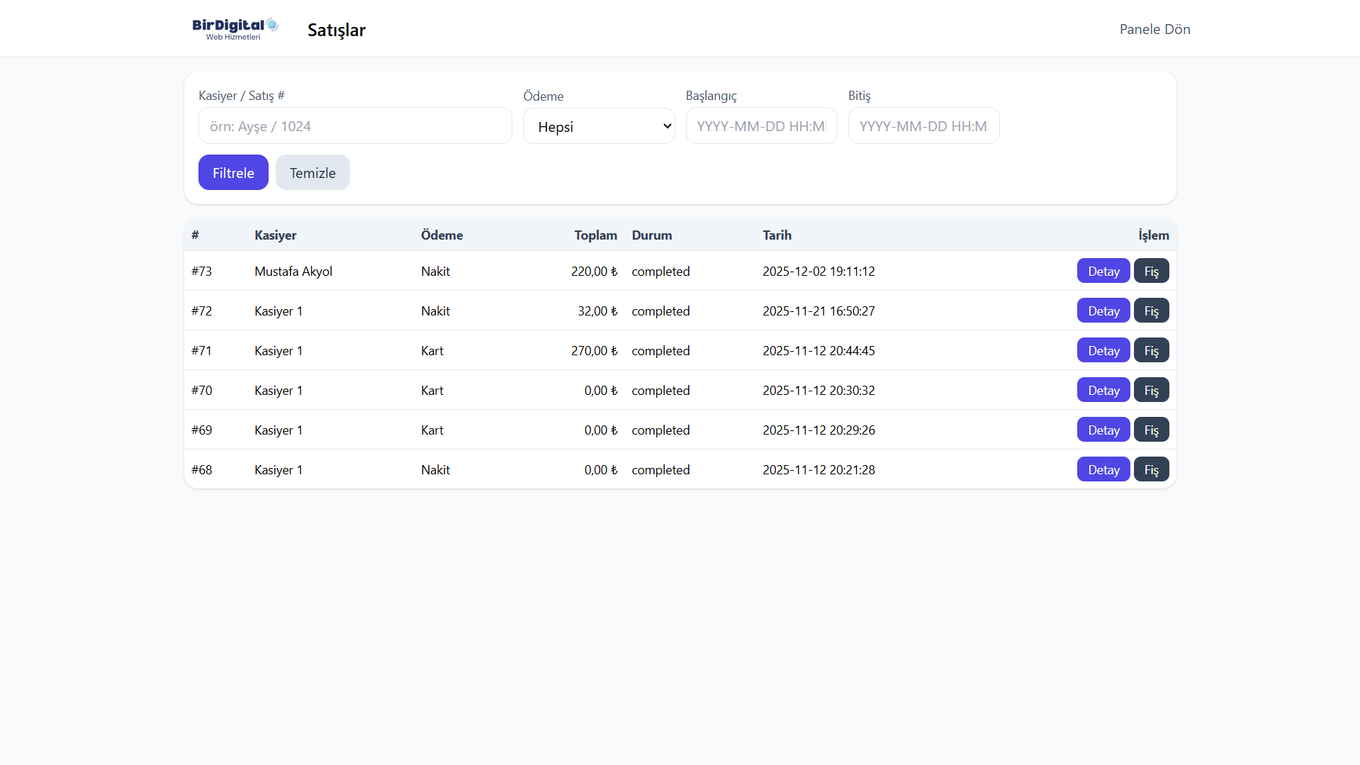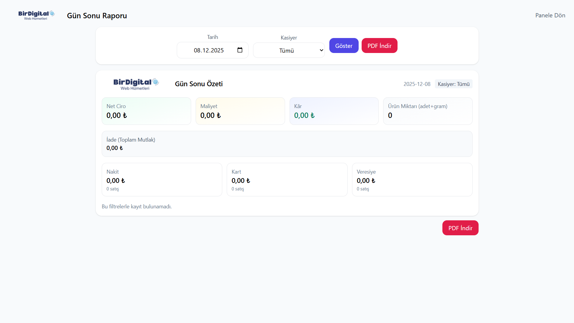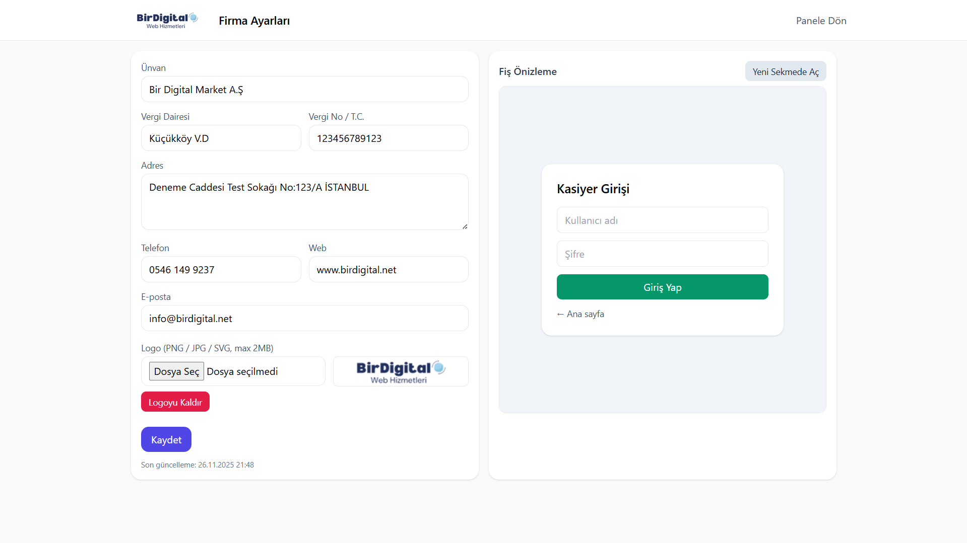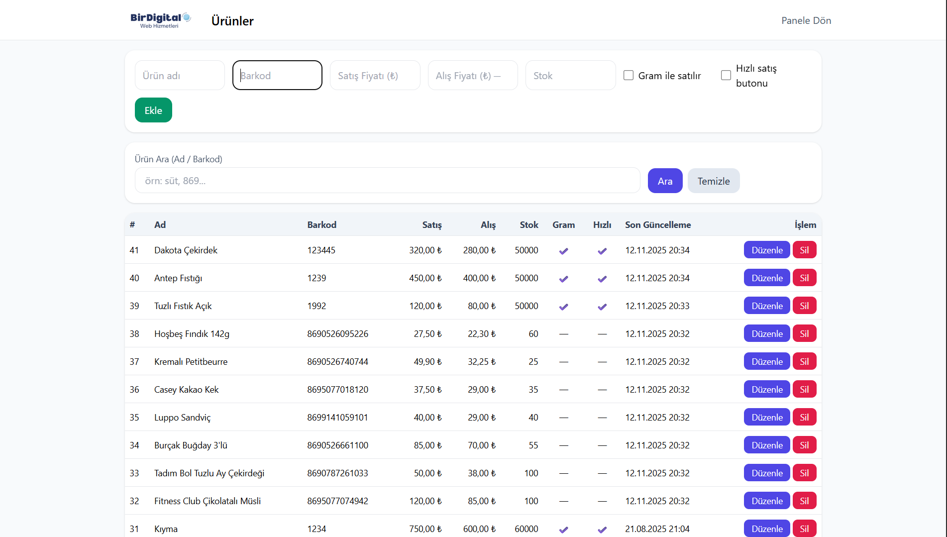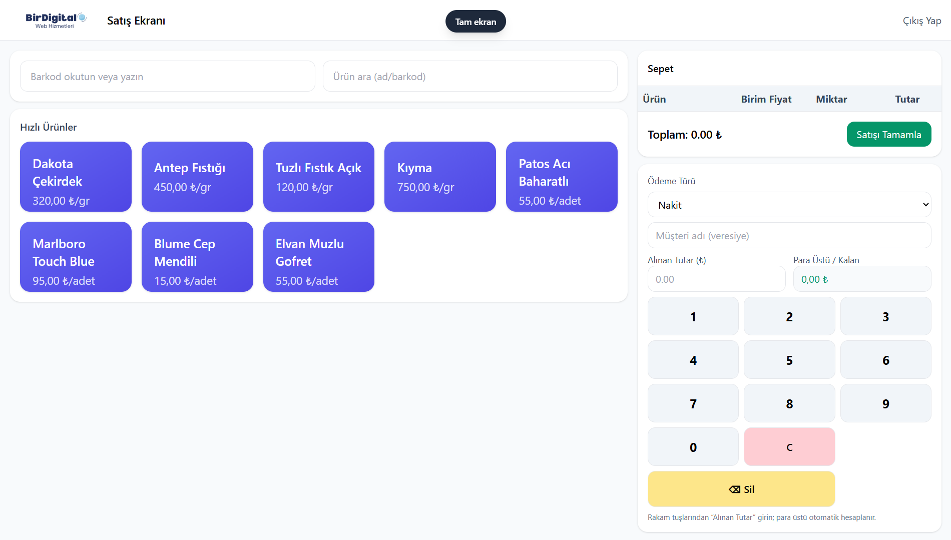 Bir Digital Market POS; modern tasarımı, dokunmatik ekran uyumu ve geliştirilebilir altyapısıyla işletmenizin satış süreçlerini hızlandırırken, profesyonel bir kasa deneyimi sağlar.