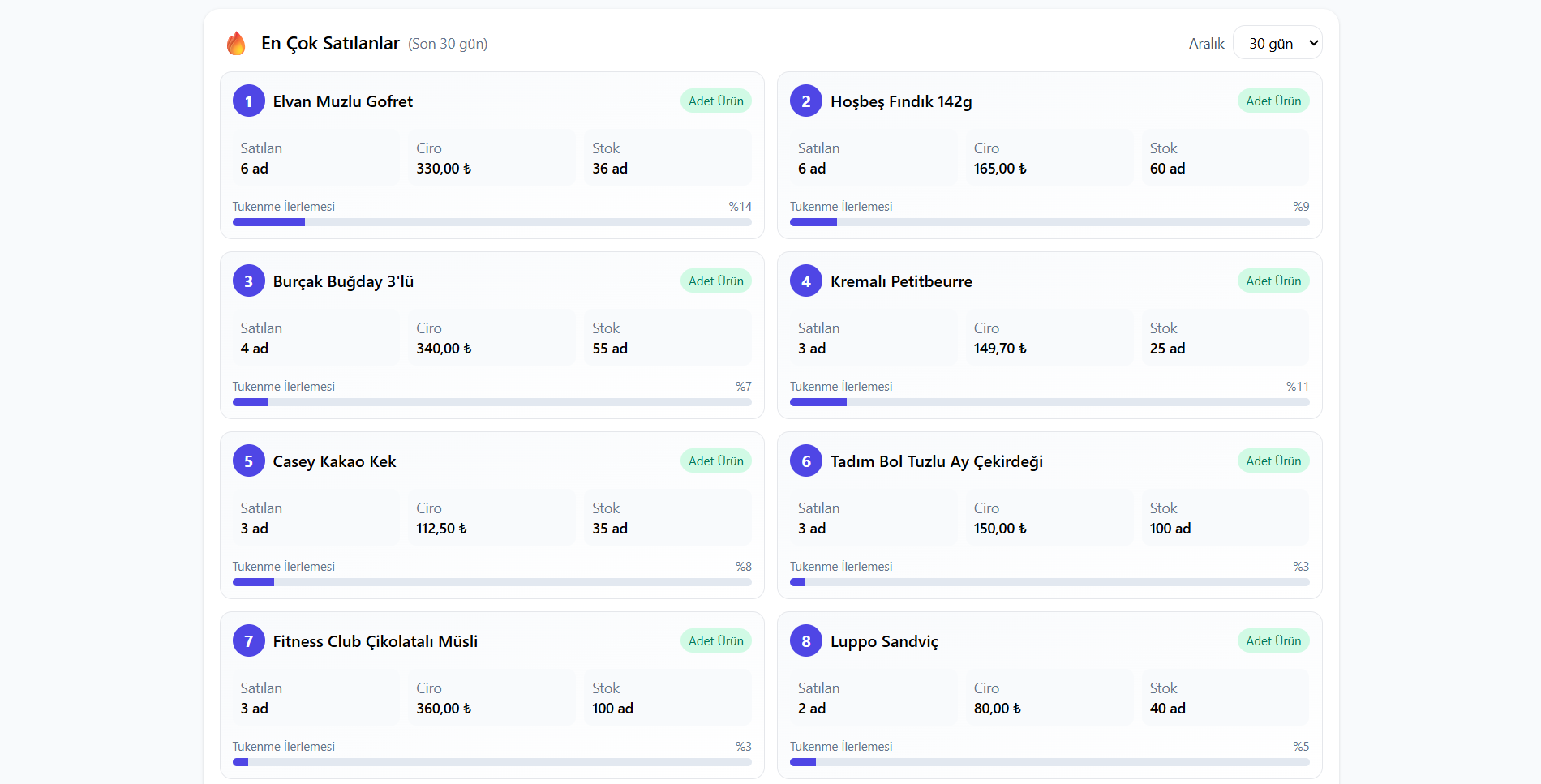 Tam ekran sabit POS arayüzü sayesinde satış sırasında ekran kaymaz, sepet ve ödeme alanları her zaman net şekilde görünür. Nakit, kart ve veresiye satış desteği, otomatik para üstü hesaplama ve kullanıcı yetkilendirme özellikleriyle hem kasiyerler hem de işletme sahipleri için güvenli ve pratik bir kullanım sunar.